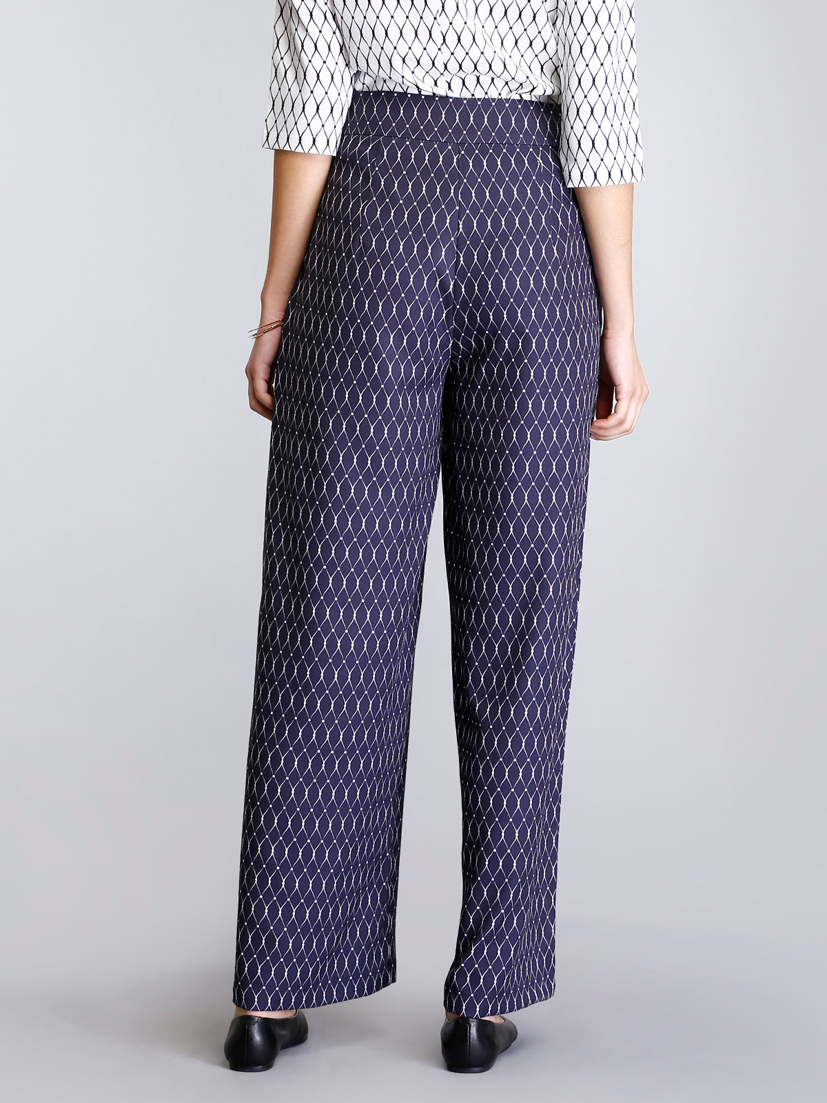 Brighten your workday with these wide leg pants. These have overall geometric print, functional pockets and a side zip for closure. Made from Poly Moss, these are soft, stretchable, anti-wrinkle and anti-pill. The hem of the trousers is intended to fall according to the image on a height of 5'3" to 5'5". Colour may vary slightly according to screen settings and resolution.